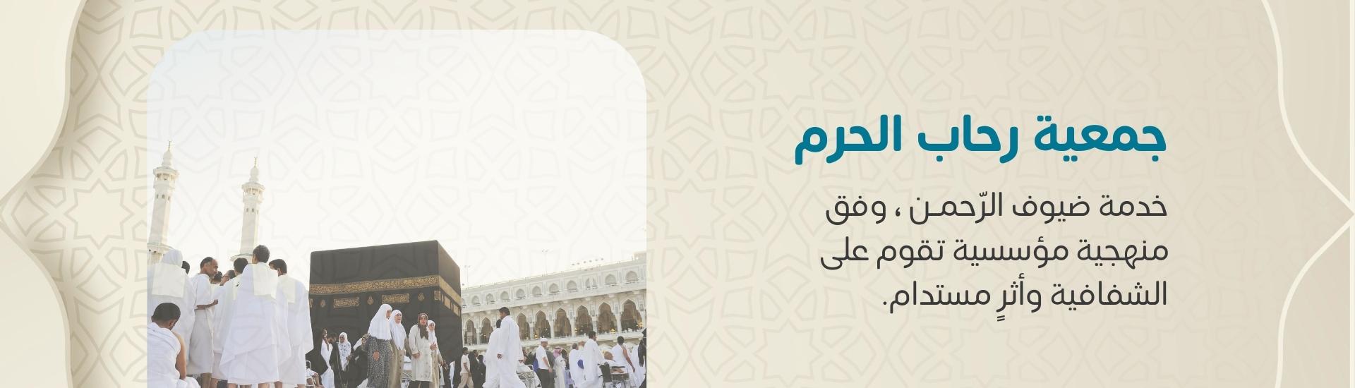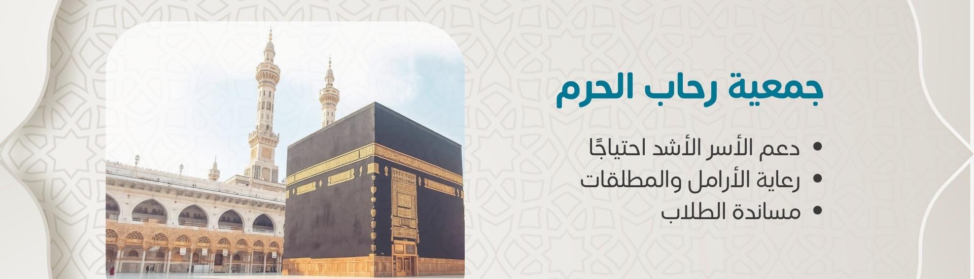 جمعية رحاب الحرم جمعية خيرية مرخصة برقم (10001561500)، تعمل في منطقة مكة المكرمة على تقديم الخدمات الاجتماعية والتنموية، ودعم الأسر الأشد احتياجًا، ورعاية الأرامل والمطلقات، ومساندة الطلاب، وخدمة ضيوف الرحمن، وفق منهجية مؤسسية تقوم على الشفافية وأثرٍ مستدام.